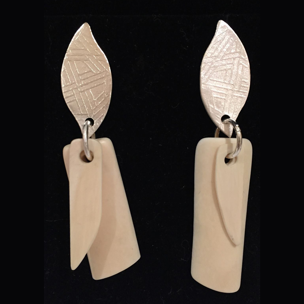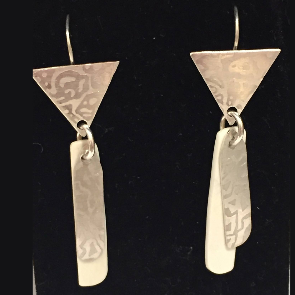 Etched Sterling Silver (triangle) and recycled ivory piano keys