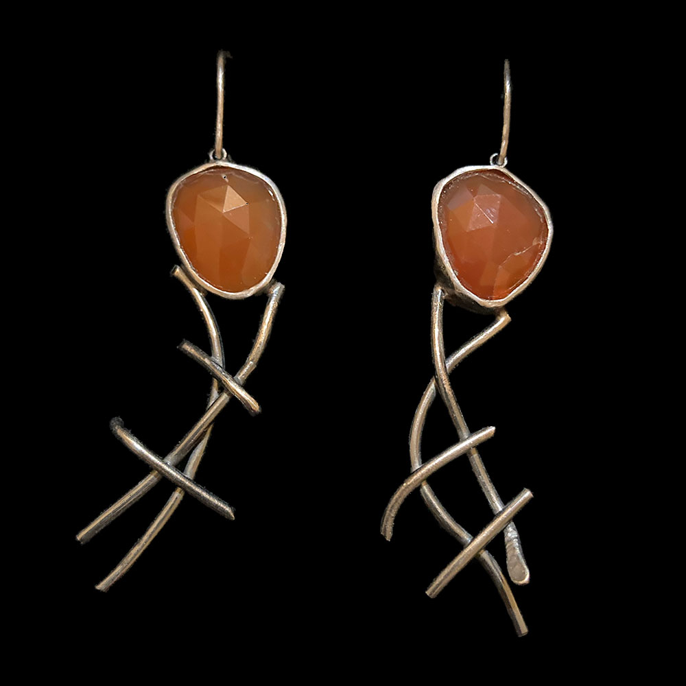 Oxidized argentium silver earrings with carnelian stones and silver ear wires with an industrial feel (one of a kind so each pair will differ)