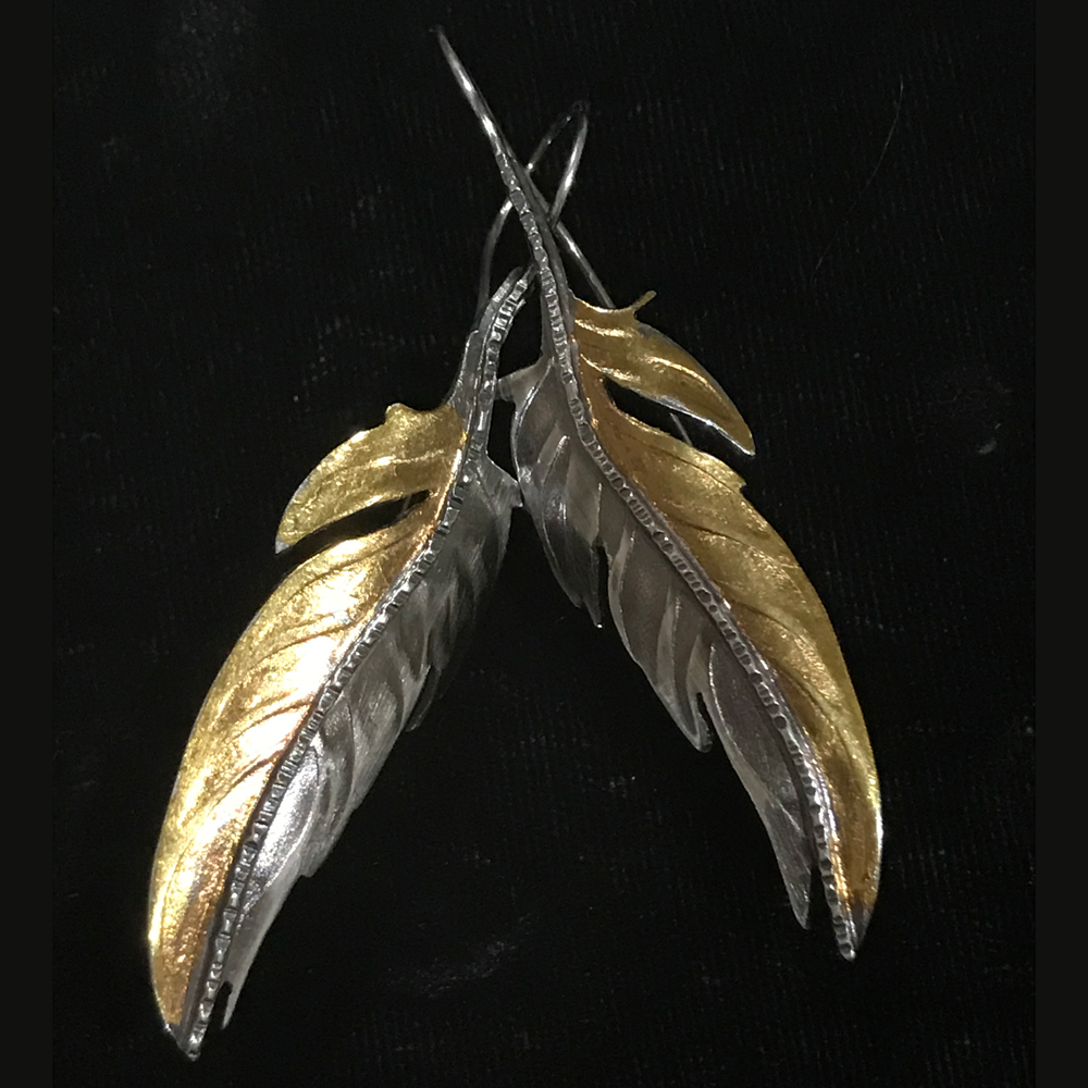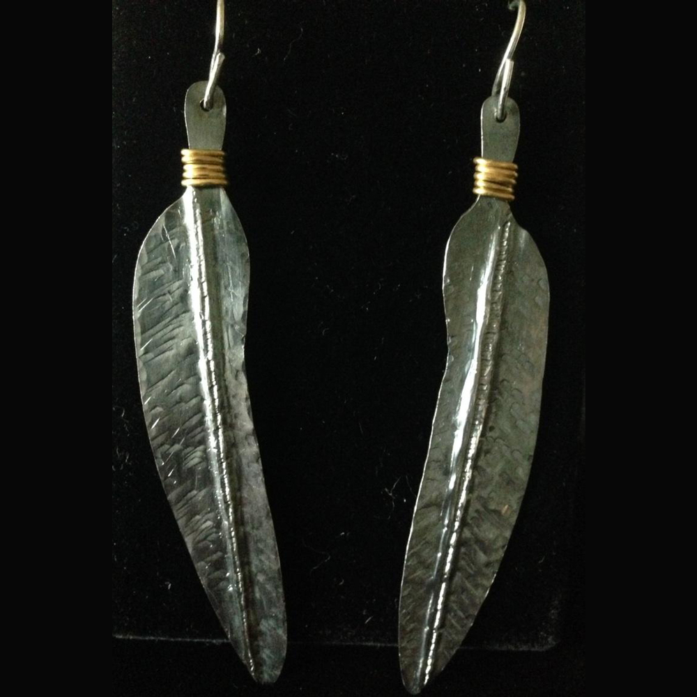 Oxidized SS Fold-formed feathers w/gf wire and SS ear wires