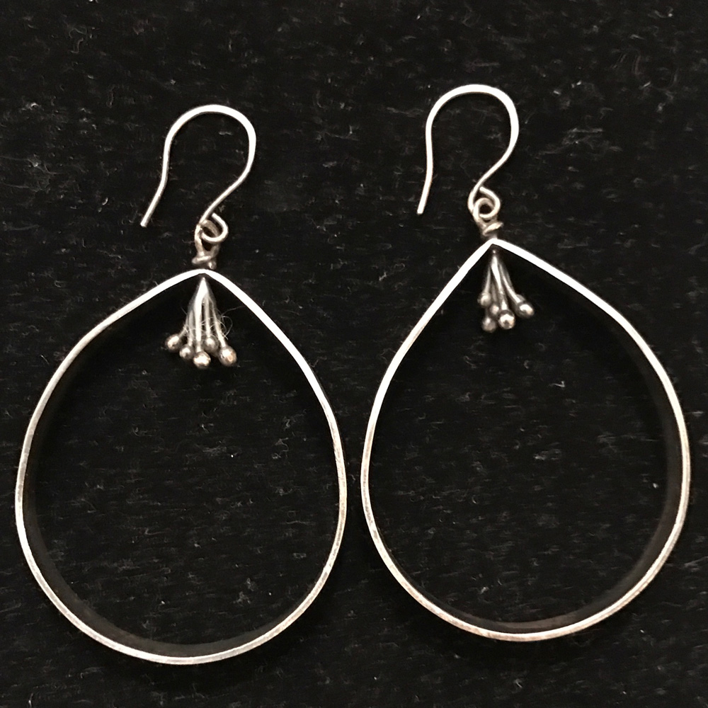 Bottom: 1 1/2” long textured and oxidized with a 1” sterling silver hoop $69