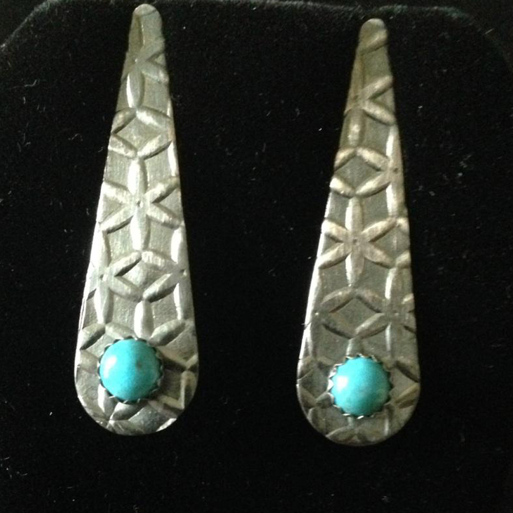 Oxidized SS Printed tear drop shaped w/turquoise stones and ss posts