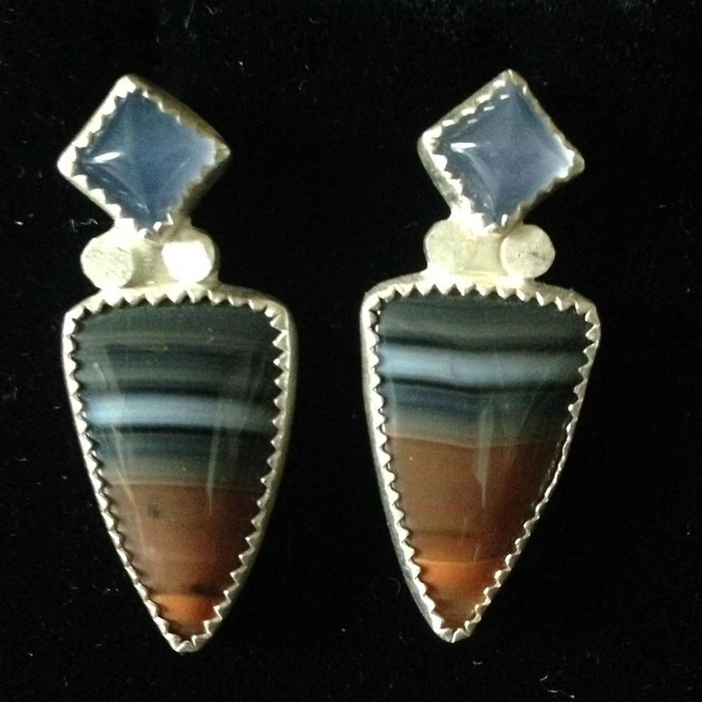 Chalcedony & Brazilian Agate set in SS w/SS posts
