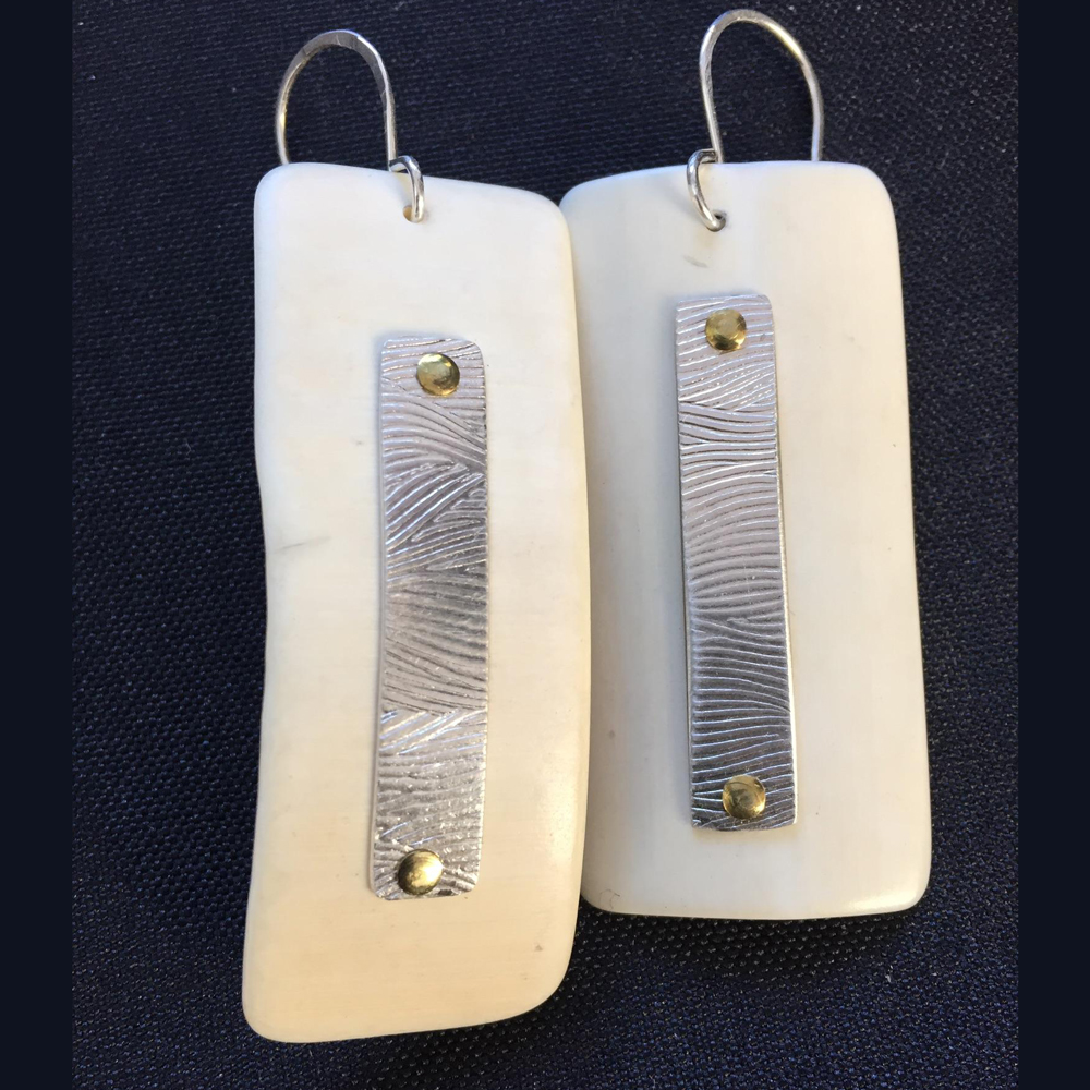 Etched Sterling Silver (square) and recycled ivory piano keys
