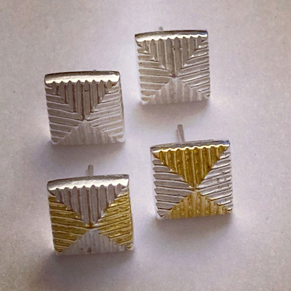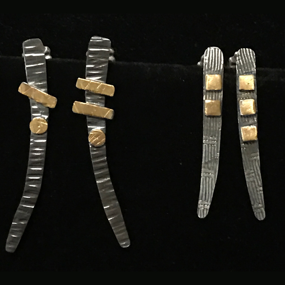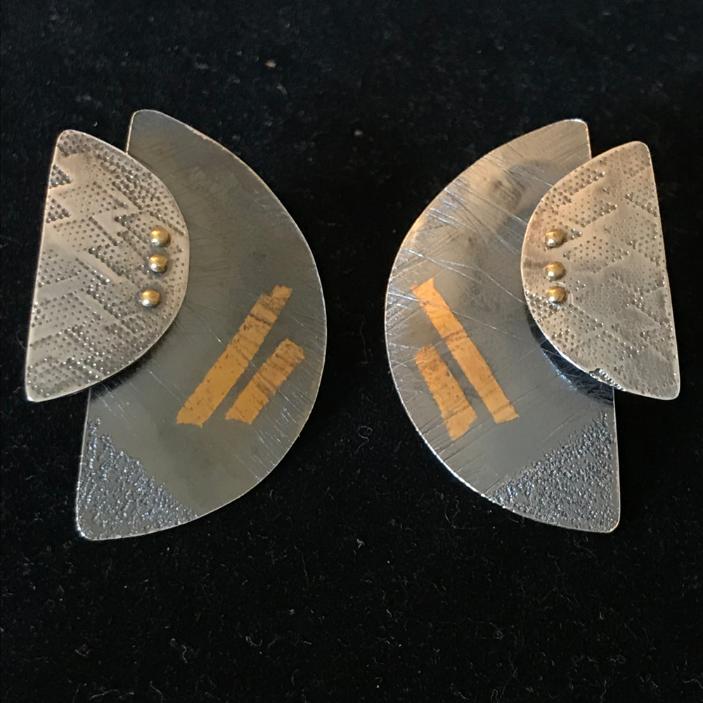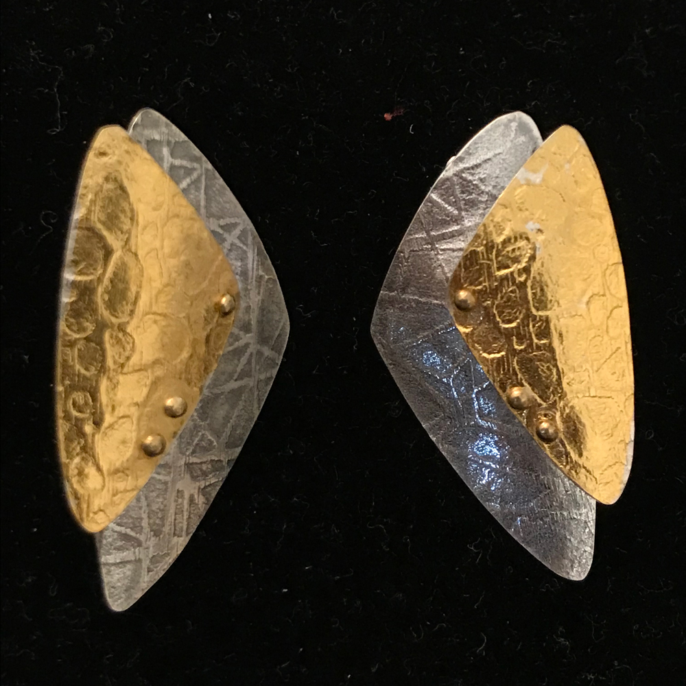 Argentium silver (will not tarnish) and 24 kt gold keum boo post earrings (can also be made with wires)