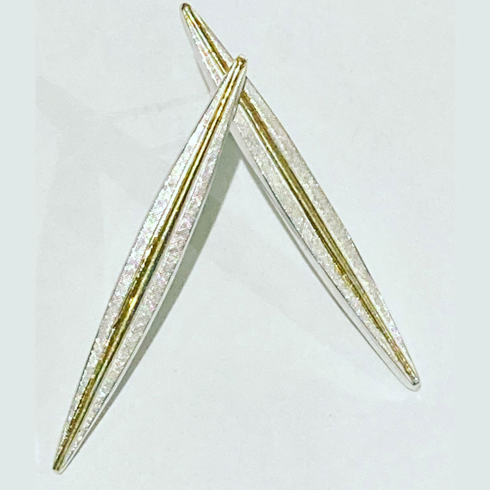 Sterling silver oxidized sword earrings with 24 kt gold keum boo - long 2 1/2" - short 2" - textures may vary