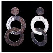 Sterling silver hammered 2 rings with sterling silver posts – 2 ½” long